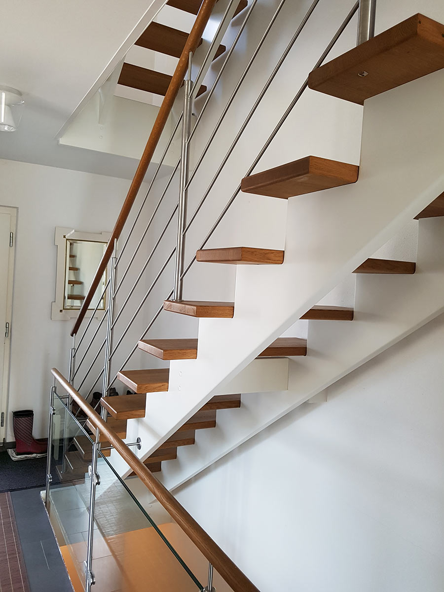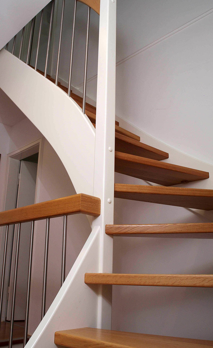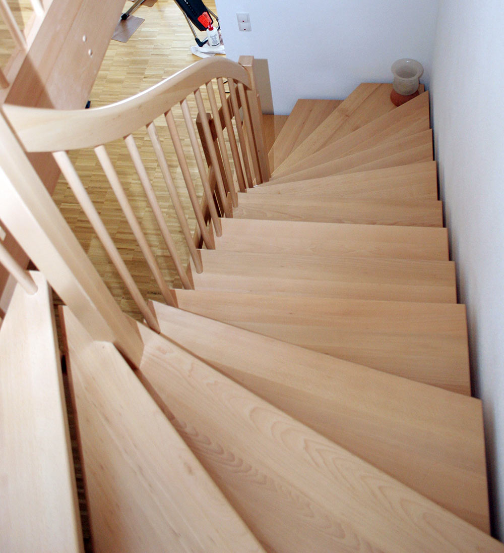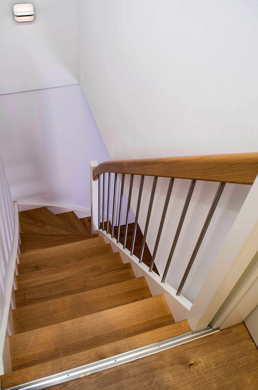 Egal, ob im klassischen oder modernen Design – Massivholztreppen fügen sich harmonisch in jedem Raum ein und beeinflussen zudem das Raumklima positiv. Die große Vielzahl an Holzarten, sowie deren unterschiedlicher Bearbeitung im Finishing, gibt uns die Möglichkeit Ihre Treppe ideal in den Wohnraum zu integrieren.