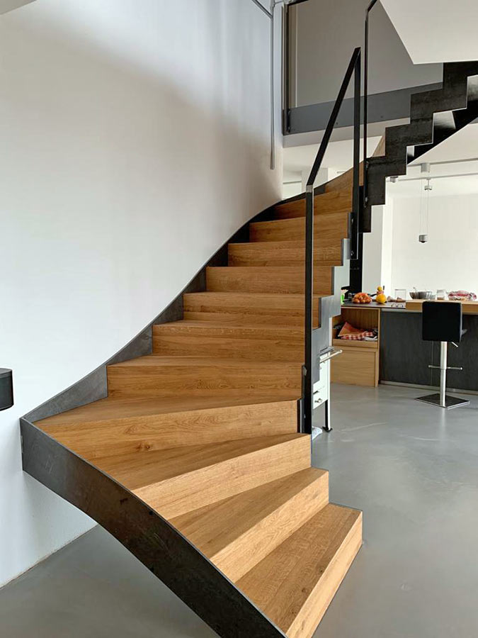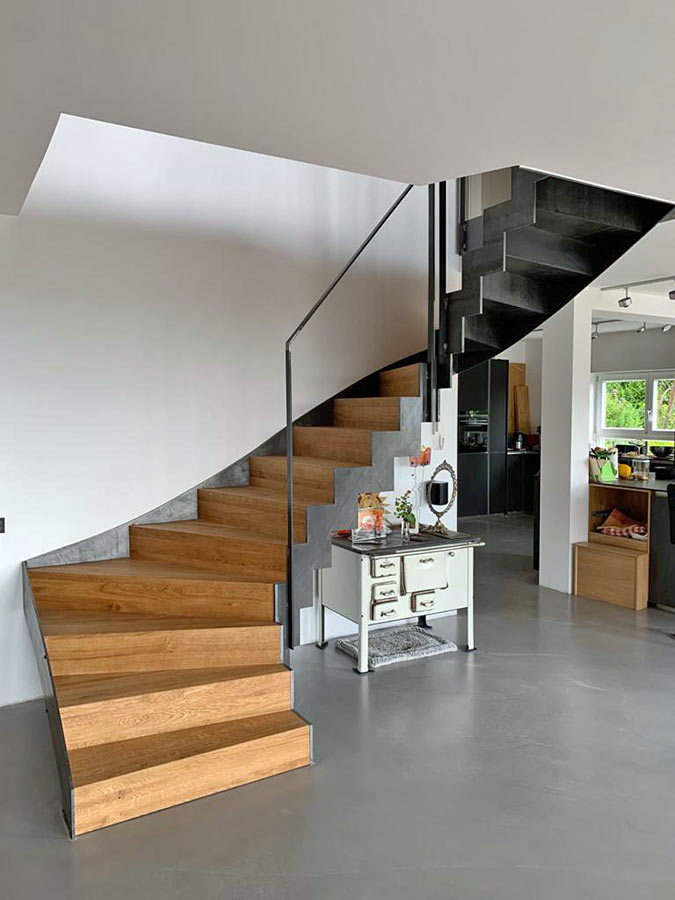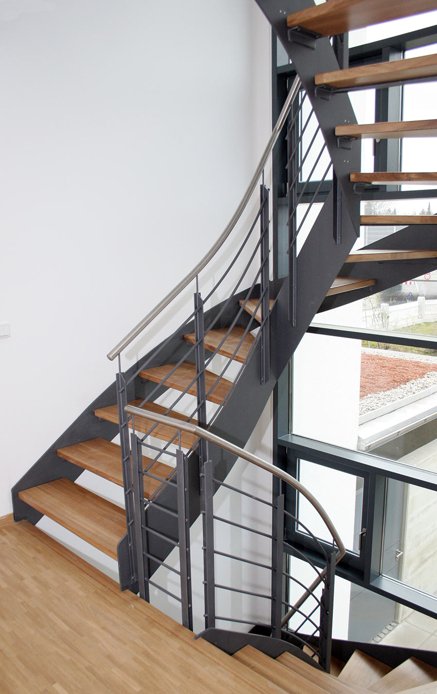 Aufgrund der Materialeigenschaften von Metall ergeben sich in der optischen Gestaltung eine Vielzahl an Möglichkeiten. Die geringen Materialquerschnitte erzeugen eine Leichtigkeit in der optischen Gestaltung und verleihen Räumen einen puristischen und modernen Stil. Stahltreppen kombiniert mit Holz und Glas erfreuen sich immer größerer Beliebtheit.